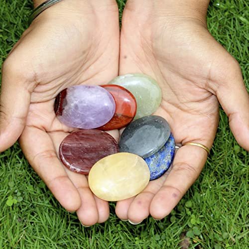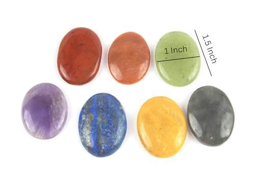 7 Oval Shaped Chakra Stones Approx Size 1.5 inch And 100-120 Grams 7 Chakra Healing Crystals Set – Natural Plain Oval Stones for Reiki, Meditation & Energy Balancing – 7 Polished Gemstones with Pouch – Spiritual Gift for Yoga & Chakra Work