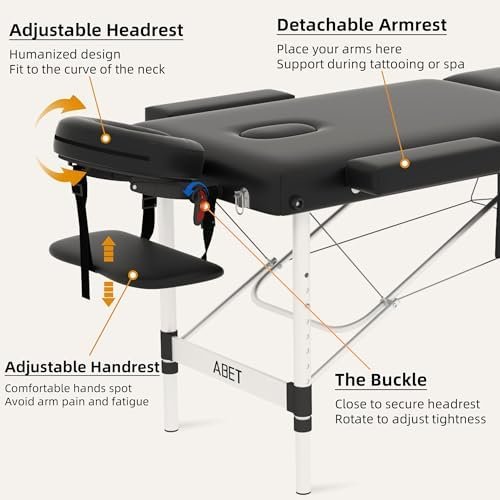 Be the first to review “ABET Massage Table, 3 Fold Portable Professional Lash Tattoo Spa Bed, Height Adjustable 23.5″ Wide Compact Facial Table with Detachable Oil Pocket Towel Rod Face Cradle Armrest, Aluminum Feet & Black”