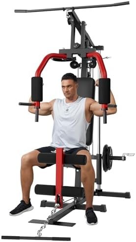 All in One Home Gym Equipment, Weight Machine with 100 Lbs Weight Stack, Workout Station Exercise Machine for Full Body Workout with Pulley System, LAT Pull Down System