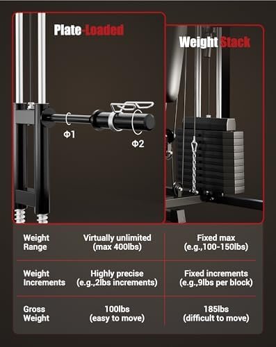Use Your Existing Weights: This versatile strength station works seamlessly with standard 1″ and 2″ Olympic weight plates (not included), saving you hundreds on specialty plates. Customize your resistance from 10-400 lbs using the weights you already own – perfect for progressive training at any fitness level.