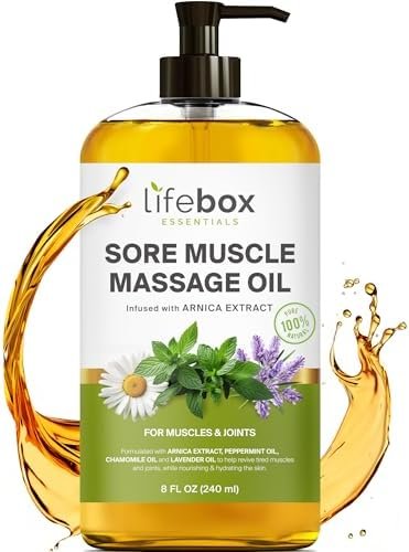 Arnica Sore Muscle Massage Oil – 100% Pure & Natural – Massage Therapy for Muscles & Joints – Body Oil Infused with Arnica Extract, Lavender Oil, Peppermint Oil & Chamomile Oil – 8 FL OZ