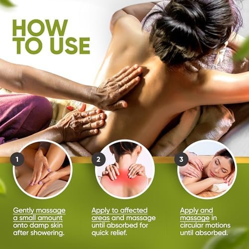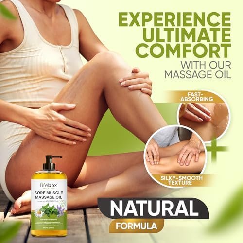 SORE MUSCLE MASSAGE OIL FOR MASSAGE THERAPY – Our 100% Natural formula, expertly crafted to help alleviate tired, aching muscles. With its easy absorption and natural aroma, this oil helps eases tension while leaving your skin feeling deeply nourished and moisturized.