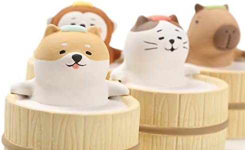 [ Size, Weight, and Material ] Bathing animals: Approx. 2.3 x 2.3 x 2.5 inch ( 5.8 x 5.8 x 6.4 cm) 2.15oz (61g) Animals with heart: Approx. 2.0 x 2.0 x 2.2 inch (5 x 5.2 x 5.6 cm) 1.76oz (50g) Material: Ceramic