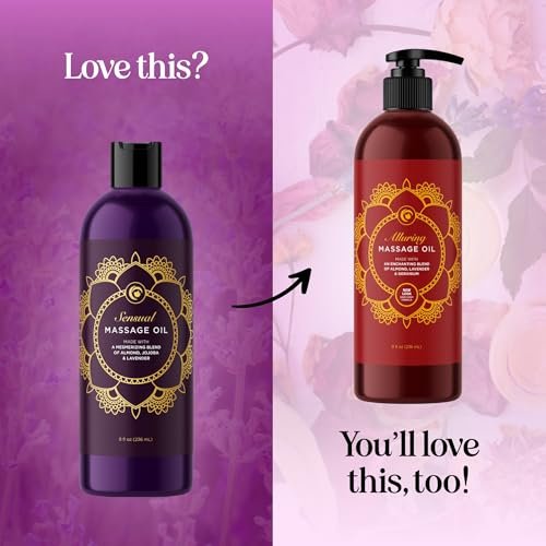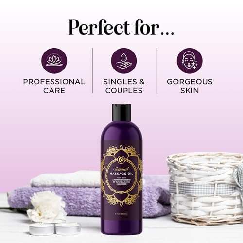 Aromatherapy Sensual Massage Oil for Couples – Relaxing Full Body Massage Oil for Date Night with Sweet Almond Oil – Vegan Lavender for Massage Therapy Smooth Gliding Formula 8 Fl Oz