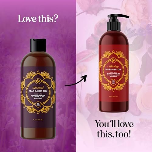 Aromatherapy Sensual Massage Oil for Couples – Relaxing Lavender Massaging Oil for Massage Therapy with Vitamin E Jojoba & Sweet Almond – Naturally Scented Vegan Non GMO & Gluten Free (16 Fl Oz)