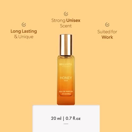 BellaVita Luxury Honey OUD Eau de Parfum Travel Size Edition 20 ml | Long-Lasting Mini Perfumes for Women | Notes: Patchouli, Vanilla, Bergamot & Spicy Notes | Pocket Perfume for Women | Vegan Perfume