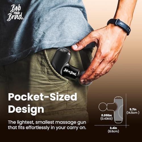 BOB AND BRAD Q2 Mini Massage Gun, Pocket-Sized Deep Tissue Massager Gun, Portable Percussion Muscle Massager Gun, Ultra Small & Quiet Muscle Massage Gun with Carry Case, Home Gym Travel, Black