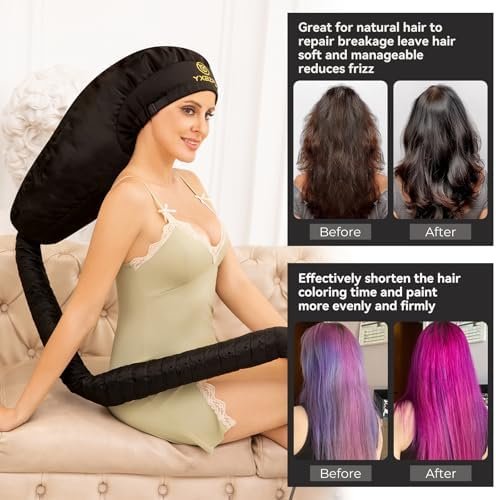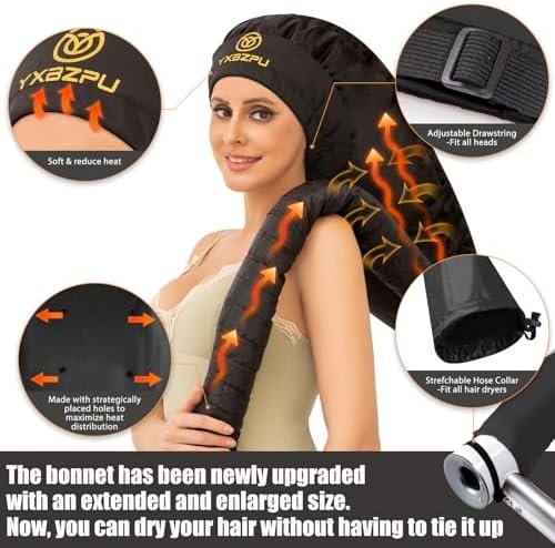 Upgarde Design – Equipped with longer and wider size, our hair dryer caps for deep conditioning is much more suitable for thick and curly natural hair. High quality durable plastic lining, double layer for a balanced temperature, for a long time, the cord strap could easily adapt to your head size, easy to clean.