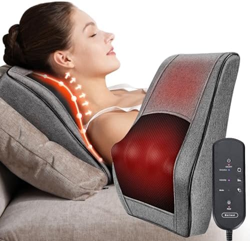 【Upgraded Neck and Back Massager】Larger size: 15*13 inches, 6 inches longer than ordinary massage pillows. Perfectly fits the neck and back curves to provide most comfortable massage experience. 2 heating positions with 2 heating levels. 3 adjustable intensities, all controlled by a convenient remote.