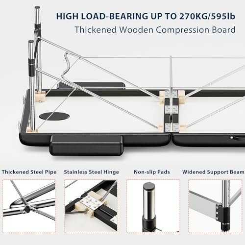 STURDY ALUMINUM: The durable aluminum frame ensures stability and can support up to 450 lbs. Ideal for all body types, this massage table remains steady, allowing you to focus on delivering a relaxing, effective massage without any wobbling