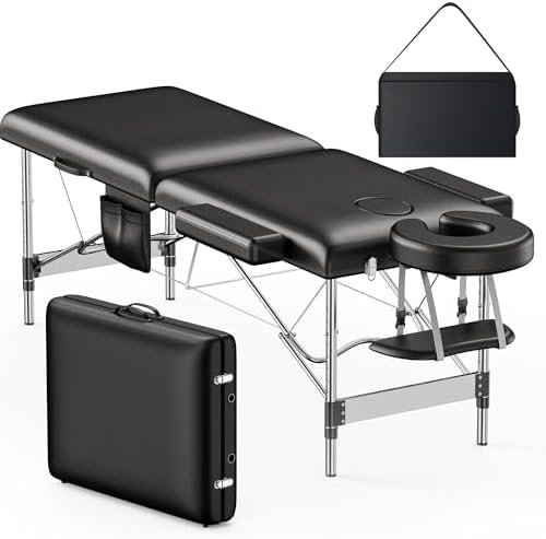 Brelley Massage Table Portable, 2-Fold Lash Bed with Side Pocket, Adjustable Height, Sturdy Aluminum Frame, Esthetician Spa Facial Tattoo Bed with Face Cradle & Carrying Bag, Black