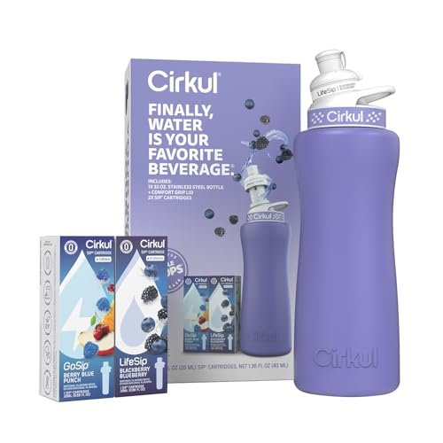 Be the first to review “Cirkul 32oz. Matte Periwinkle Stainless Steel Water Bottle Starter Kit with Purple Lid, 2 Flavor Cartridges (1 LifeSip Blackberry Blueberry, 1 GoSip Berry Blue Punch) No Sugar, Zero Calorie Drink Mix”