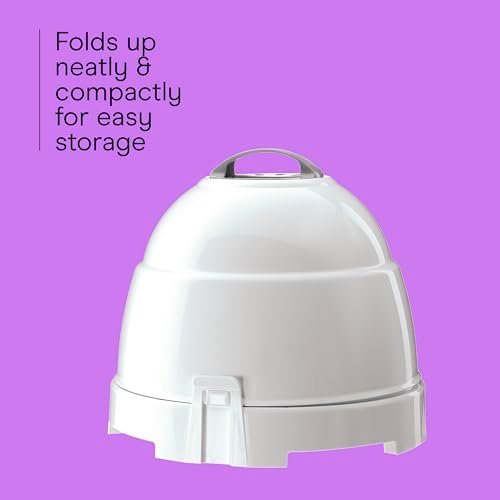 Experience professional salon drying at home. Designed to make your hair routine effortless and enjoyable, this versatile hair dryer delivers even, gentle drying with 1875 watts of power and 2 heat/2 speed settings, making it ideal for all hair types. The extra-large hood is roomy enough for jumbo rollers, deep conditioning treatments, and drying your hair. The adjustable height makes it easy and comfortable to use. This compact bonnet dryer folds up neatly and features a built-in handle so you can easily store it away or take it with you. Bring salon-quality styling home.