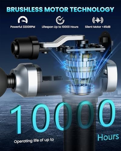 【Silent Strength, Built to Last】Equipped with a powerful brushless motor, percussion massage gun delivers up to 10,000 hours of long-lasting performance while operating quietly at less than 45 dB, allowing you to enjoy smooth and effective muscle relief at home, the gym, or the office