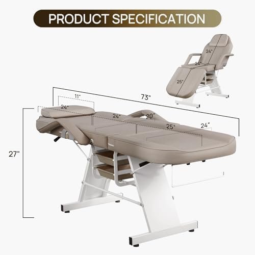 High-quality material: The facial chair frame is made of heavy-duty high-quality steel, and the multiple support design makes it strong and stable, bearing up to 330 lbs. The face chair surface is made of high quality leather, the surface is waterproof, scratch-resistant, durable and easy to clean. The interior is filled with high-density sponge, giving customers a soft and comfortable experience.