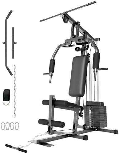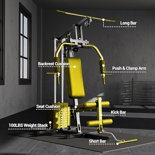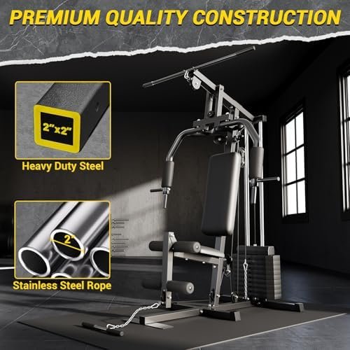 GarveeLife Home Gym Machine System with 100LBS Weight Stack, Multifunctional Weight Machine, Full Body Workout Station Exercise Equipment, All in One Home Gym with Pulley System for Strength Training