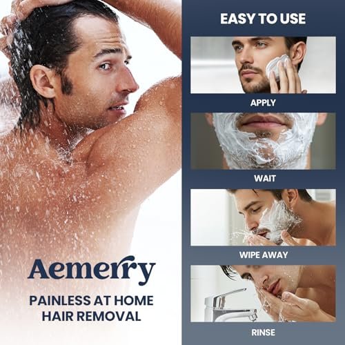 Hair Removal Cream for Men – Painless Depilatory Cream for Manscaping Unwanted Coarse Hair – Suitable for All Skin Types and Sensitive – Infused with Aloe Vera and Vitamin E – 4.2 Fl Oz