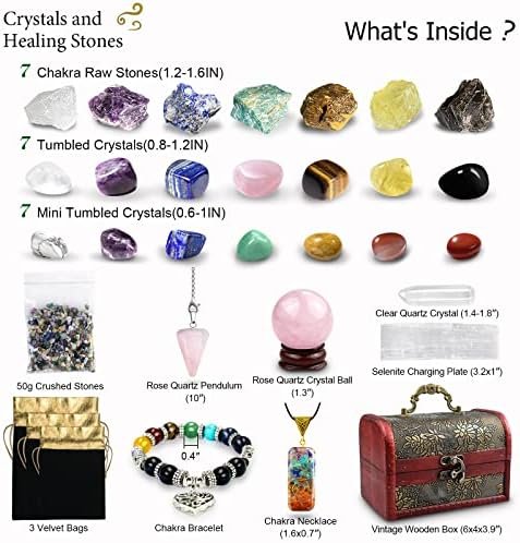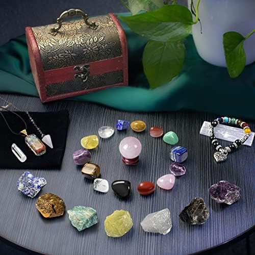 Healing Crystals Set, 28 Pcs Crystals and Healing Stones 7 Chakra Stones Kit for Beginners Raw Protection Reiki Spiritual Energy Meditation Natural Gem with Wooden Box, Crystals Gifts for Women