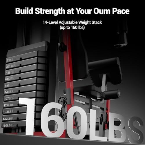 Home Gym, Workout Station with 160LBS Weight Stack, Exercise Equipment with Pulley System for Full Body Training