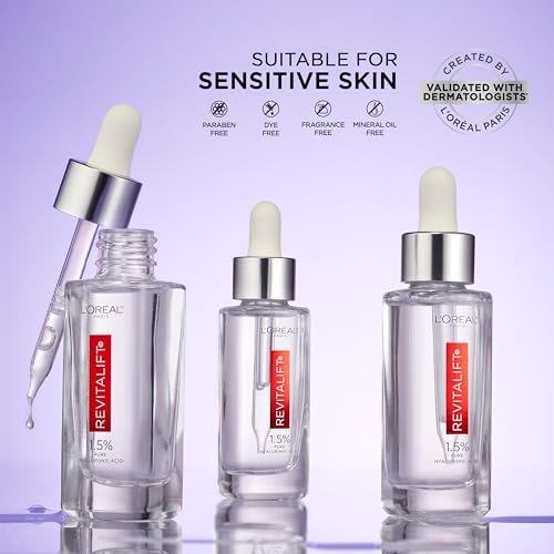 L’Oreal Paris Revitalift 1.5% Pure Hyaluronic Acid Serum for Face, Anti Aging Serum to Hydrate Skin & Reduce Wrinkles, Fragrance Free Skin Care for All Skin Types, 1 Oz