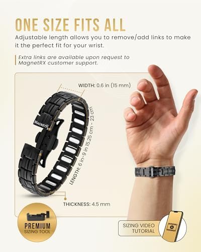 Adjustable for The Perfect Fit: Our EllipseMAX mens black bracelet comes at an adjustable length of 9.0 inches and includes a free sizing tool for easy link removal or addition. Achieve the perfect fit for your wrist with our black bracelet for men. Need extra links for our mens titanium bracelet ? Our friendly MagnetRX customer service team is ready to assist you.