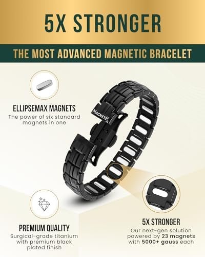 Unmatched Magnetic Power: Experience the superior strength of our patent-pending EllipseMAX titanium magnetic bracelet for men, equipped with 5,000 Gauss magnets that offer next-level strength to support your daily well-being and performance.
