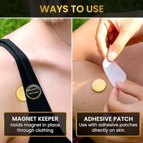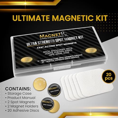 MagnetRX® Magnetic Spot Kit – Ultra Strength Body Magnets 14,200 Gauss – Effective Large Magnets for Body, Back, Shoulders, Knee, HIPS, and Neck (2 Magnets + 20 Adhesives)