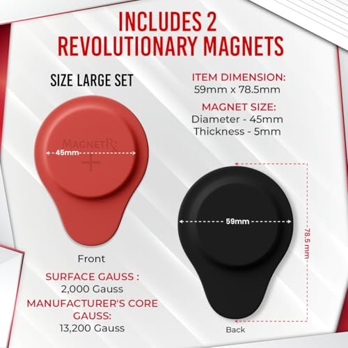 Advanced Neodymium Magnets: Our magnet therapy kit includes a pair of large round magnets (59mm x 78.50mm), designed for better contact and targeted application. We use high-power neodymium magnets with a 13,200 Gauss core strength (2,000 Surface Gauss) for maximum effectiveness. Each magnet is clearly labeled for easy use, with the positive (+) side in red and the negative (-) side in black, ensuring precise placement for optimal results.