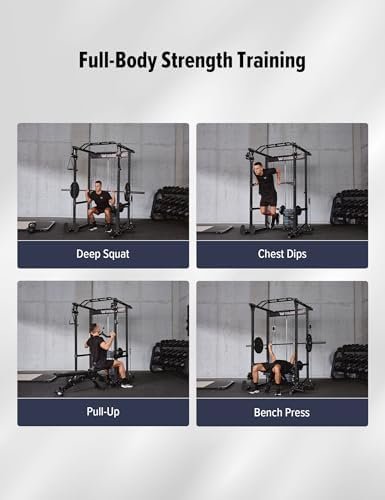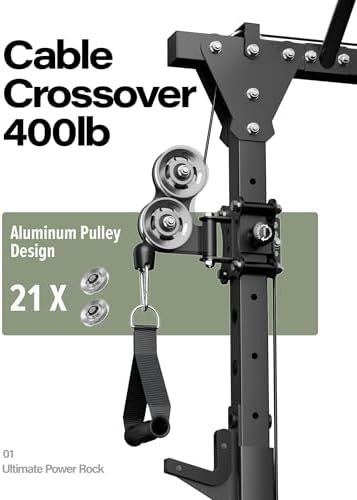 【500lb Heavy Duty & Rock Solid】Constructed with commercial-grade 2×2″ steel and reinforced uprights, this power cage eliminates wobble and supports 500lb+ barbell lifts. Upgraded aircraft-aluminum pulleys ensure silent, smooth cable movement. Secure J-hooks and safety bars guarantee safety during solo training.
