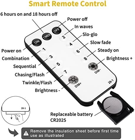 Timer Functions and 8 Mode Lights: The rv globe lights have 8 lighting modes, namely combination, in waves, sequential, slo-glo, chasing or flash, slow fade, twinkle and flash, and steady on. The rv outdoor lights also have a memory function allowing you to set your specific mode and use the timer function on the remote to turn on the lights for 6 hours and off for 18 hours automatically every day.