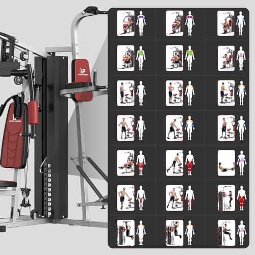 SATISFY VARIETIES OF TRAINING PURPOSES: With the assistance of ULTRA FUEGO multifunctional home gym, you can carry out workouts targeting arms, chest, abs, hips, legs and back. Designed with arm press frame, leg developer, power tower and foldable stepper, it can satisfy your various training purposes. You can do exercises such as lat pull-downs, bicep curls, arm press, leg extensions, seated rows, pull-ups, dips and so on.
