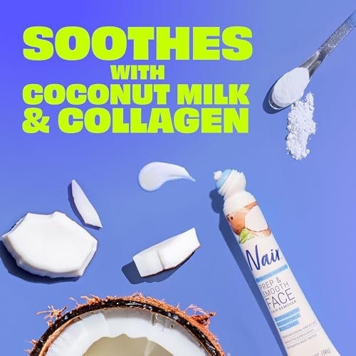 Nair Prep & Smooth facial hair remover for women infused with hydrating coconut milk and collagen for sensitive skin
