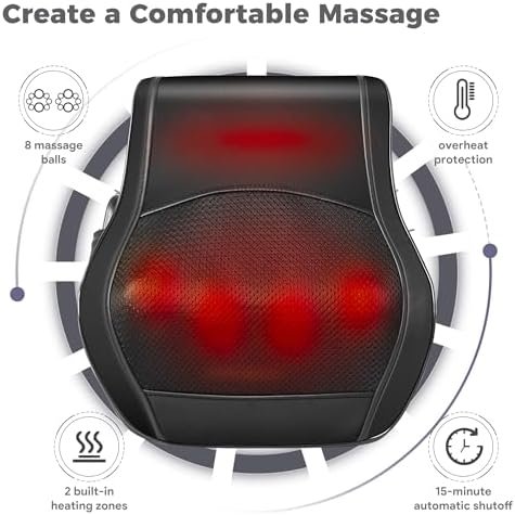 Heating Function: Enhance your neck massager with the built-in heating feature. The gentle warmth helps to soothe sore muscles. For added safety, the massager has an overheat protection function that automatically turns off after 15 minutes of use.