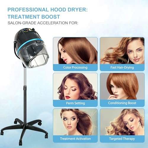 Professional Floor Hair Dryer: This salon bonnet hair dryer is a good hair-styling tool for coloring, hot-perm, conditioning and hair-drying, hair-treatment and spot-caring, while protecting your hair from dryness, split ends, and frizz. You can enjoy salon hair care and do your favorite hairstyles at home