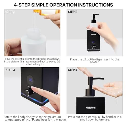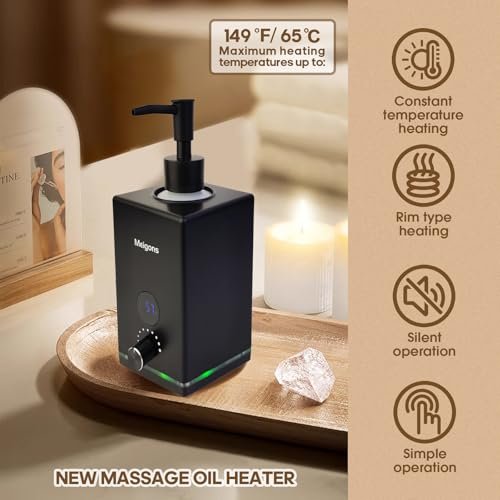 Multipurpose: Meigons massage oil warmer is suitable for heating various massage oils, body lotion, face creams or shaving cream. Heating can improve the fluidity, volatility, and permeability of massage oils, releasing heat and aromatic odors.