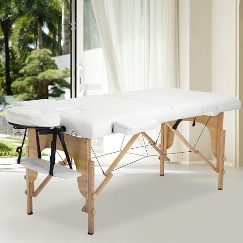 PayLessHere Massage Bed Portable Massage Table 24 inch Wide Lash Bed 2 Folding Height Adjustable Spa Table with Towel Hanger Oil Pouch Half Bolster Round Bolster Non-Woven Bag