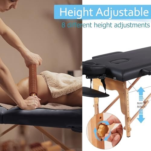【Height Adjustable】 The lash bed offers 8 different height adjustments ranging from 24in to 34in. Please ensure the knobs are securely tightened before use for optimal safety. portable massage table portable physical therapy table