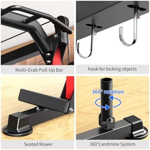 L02 power cage, equipped with a 360-degree adjustable Landmine Attachment, has a squat rack and the functions of single parallel bars and barbells and pull-ups and cable crossing systems to help you work out your whole body, it can help you do a full body workout at home, sculpting the muscles of the arms, shoulders, back, hips, chest and abdomen.
