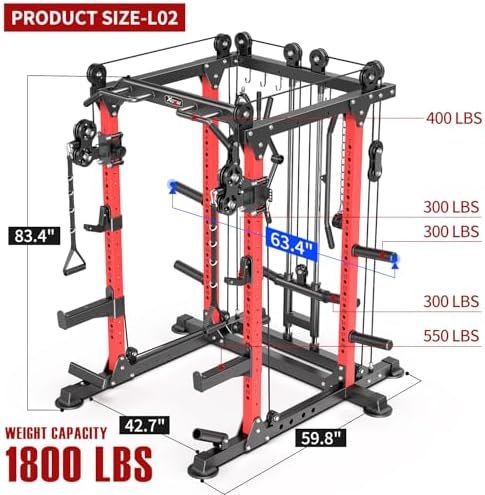 Size-Covering an area of 42.7 “L x 59.8″ W x 83.4 ” H, the L02 is made of commercial steel and can withstand up to 1,800 pounds during training, with extremely high stability.