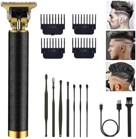 Professional Cordless Hair Clipper and Trimmer for Men, T Blade Zero Gapped Rechargeable Beard Shaver, Hair Cutting Kit With Ear Spoon Tool Set, Black