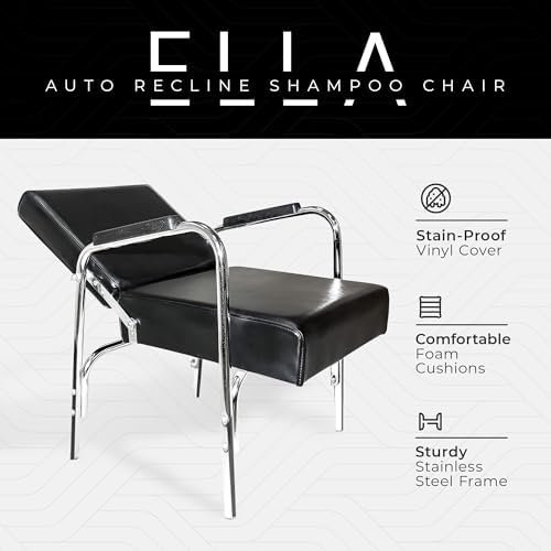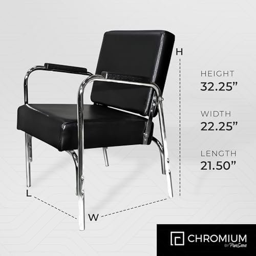 PureSana Chromium Ella Professional Auto Reclining Salon Chair with Washable Soft Vinyl, High Density Foam Cushions, and Stainless Steel Frame, Black