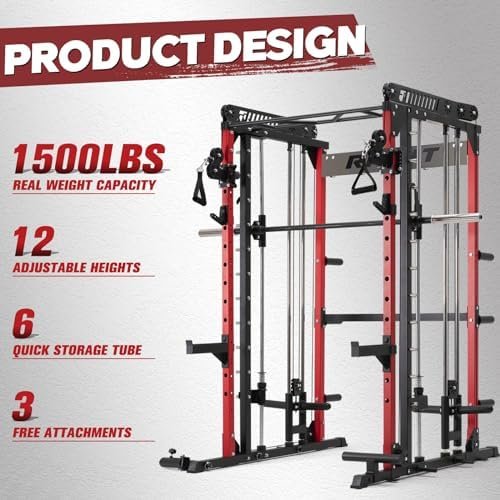 RitFit M1 & M1 Pro Smith Machine with Cable Crossover System, Multi-Function Squat Rack Power Cage for Home Gym, Power Rack and Packages