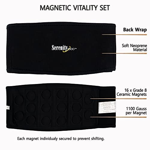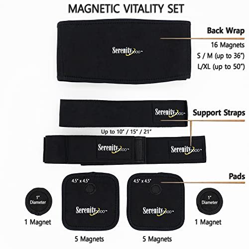 SERENITY2000 Full Body Magnetic Vitality Set for Pain Relief, Reduce Inflammation, Improve Circulation – Eight-Piece Set (Large/XL – waist up to 45″)