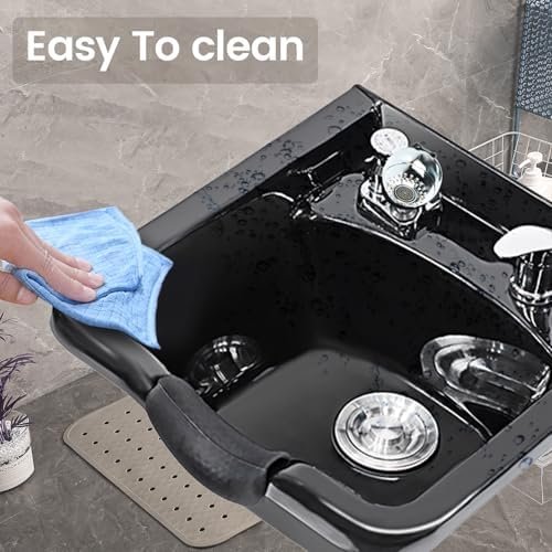 Shampoo Bowl for Salons, Black ABS Plastic Shampoo Sink for Home, Easy to Clean and Install Salon Shampoo Bowls for Hair Stylist