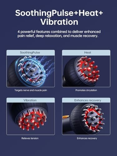 4-in-1 Multi-Mode Technology: Combines SoothingPulse technology, vibration, and heat with 9 customizable intensity levels, ensuring precise control for maximum comfort and deep tissue relaxation. Whether you’re looking to unwind after a long day or soothe muscle tightness, this all-in-one solution adapts to your needs.