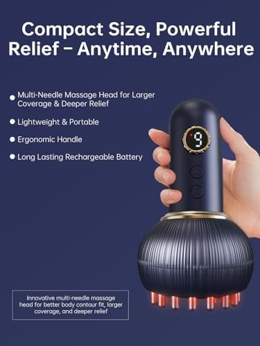 Ergonomic & Portable Design: Equipped with a multi-needle massage head for wider coverage and precise relaxation. Its compact, portable design makes it perfect for use at home, the gym, or while traveling. Powered by a high-capacity rechargeable battery, it provides multiple uses on a single charge.