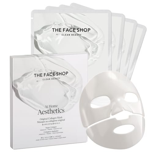 THE FACE SHOP Original Vegan Collagen Face Mask, Korean Glass Skin Essential, Peptide Hydrogel Mask for Firming & Skin Elasticity, Moisturizing, 4EA