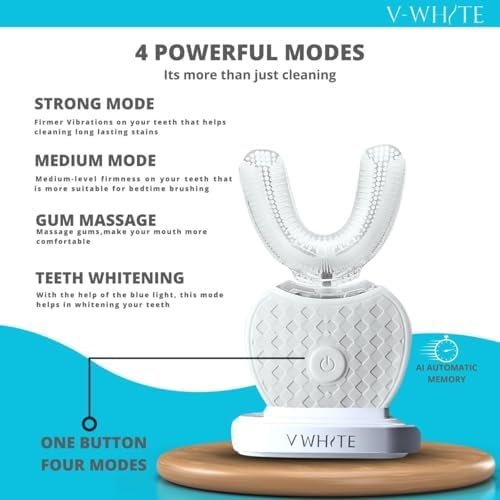 V-WHITE Ultrasonic U-Shaped Toothbrush for Teeth Whitening, Electric Toothbrush For Adults – 360° Mouth Cleansing, Hands Free Gums Protection – Wireless Charging & LED Light -Waterproof IPX7 Certified