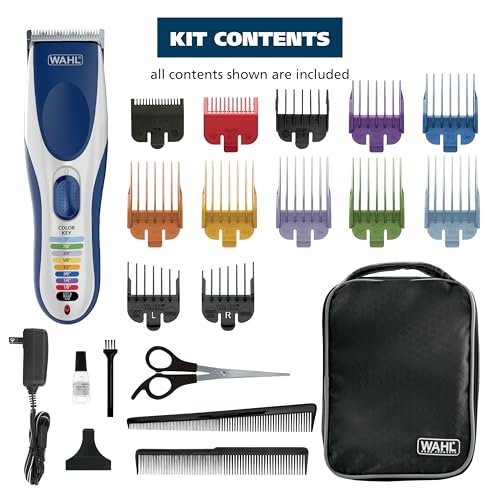The Wahl Color Pro Cordless Clipper kit features color-coded combs that make it quick and easy to find the right comb size. The convenient color code guide on the clipper helps make it easy to identify the right size and comb color in seconds. Finding and remembering everyone’s favorite hair length is easier than ever. Corresponding the correct comb to the right cutting length is simple with our easy-to-see attachment guards. With a variety of cutting lengths, adjusting the trim length is pain-free. Quickly reference the color key on the face of the clipper and attach the corresponding-colored clipper comb attachment. The clipper powerful, long-lasting rechargeable battery with a run time of up to 60 minutes. Clipper can be used with or without a cord for ultimate convenience. Includes a self-sharpening stainless-steel blade with outstanding cutting performance. The stainless-steel blade can also easily be removed for easy cleaning. Color Pro Cordless is rechargeable and wireless. Cord/Cordless allows you to use the clipper on the battery or when it’s charging. Since our blades are removable and rinseable they are easy to clean. Simply run them under water to wash away excess clippings and trimmings. The Color Pro Cordless color-coded haircutting kit includes the clipper with blade guard, a complete set of color-coded attachment guards, haircutting accessories, and full-color instructions with step-by-step guidance for an easy goof-proof at-home haircut. A premium hard storage case is also included for added convenience. Worldwide voltage (110 – 240V) for universal use at home or internationally. The product in the packaging may not be the same as in the photo due to continuous improvements to the product. Note: We test our clippers for cutting performance prior to packaging with a hygienic fiber. We do our best to clean the product to remove any testing particles, but it is possible a few may remain. They are not hair and can be simply wiped off.