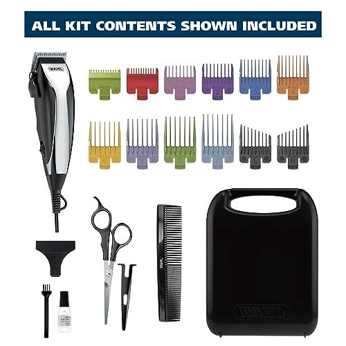 Wahl Home Haircutting Corded Clipper Kit with Adjustable Taper Lever, and 10 Color Coded Guards for Easy Clipping & Trimming – Model 79722
